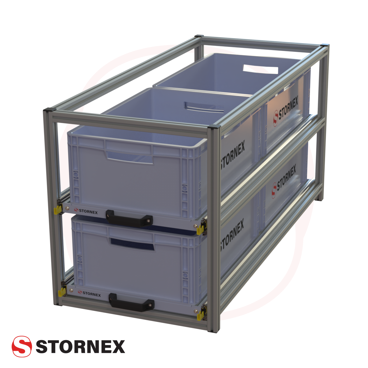Dit veelzijdige rek wordt geleverd als handig bouwpakket, bestaande uit op maat gemaakte profielen, verbinders en accessoires. Speciaal ontworpen voor standaard Euronormbakken met afmetingen van 400x300mm en 600x400mm, biedt dit rek een perfecte opbergoplossing voor al jouw benodigdheden.