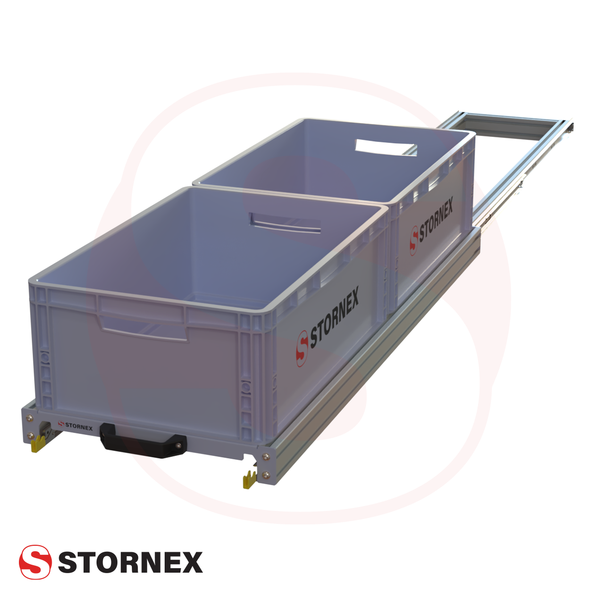 Deze Euronorm Compact Module is een basis oplossing voor het opslaan van goederen is gestandaardiseerde kunststof euronormbakken. De ladegeleider is volledig uittrekbaar en voorzien van vergrendeling. De module is verkrijgbaar in diverse lengte ladegeleiders en bakbreedtes. De module wordt geleverd als bouwpakket bestaande uit losse componenten waaronder profielen, verbinders en een set geleiders.